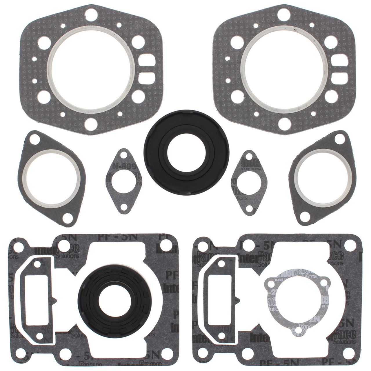 – Includes every gasket, o-ring, and oil seal required to rebuild a motor; valve seals, head, base, exhaust, clutch, ignition, and other misc. (formed rubber valve cover gasket not included)