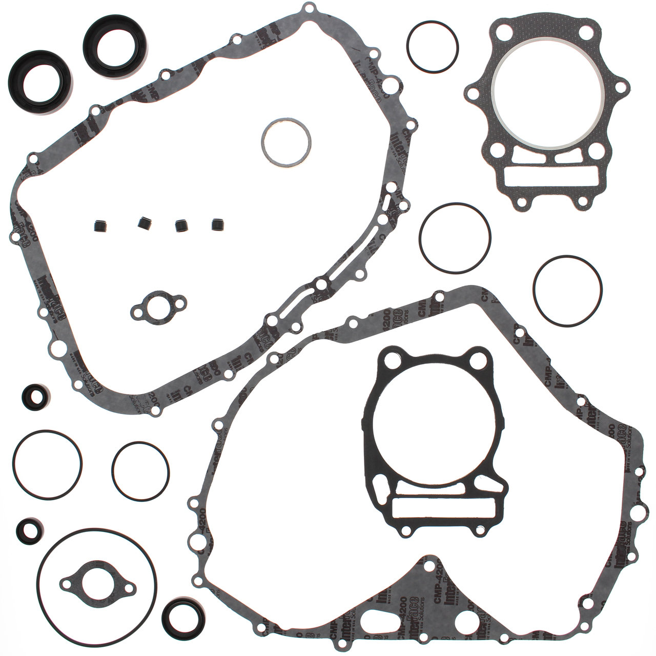 – Includes every gasket, o-ring, and oil seal required to rebuild a motor; valve seals, head, base, exhaust, clutch, ignition, and other misc. (formed rubber valve cover gasket not included)